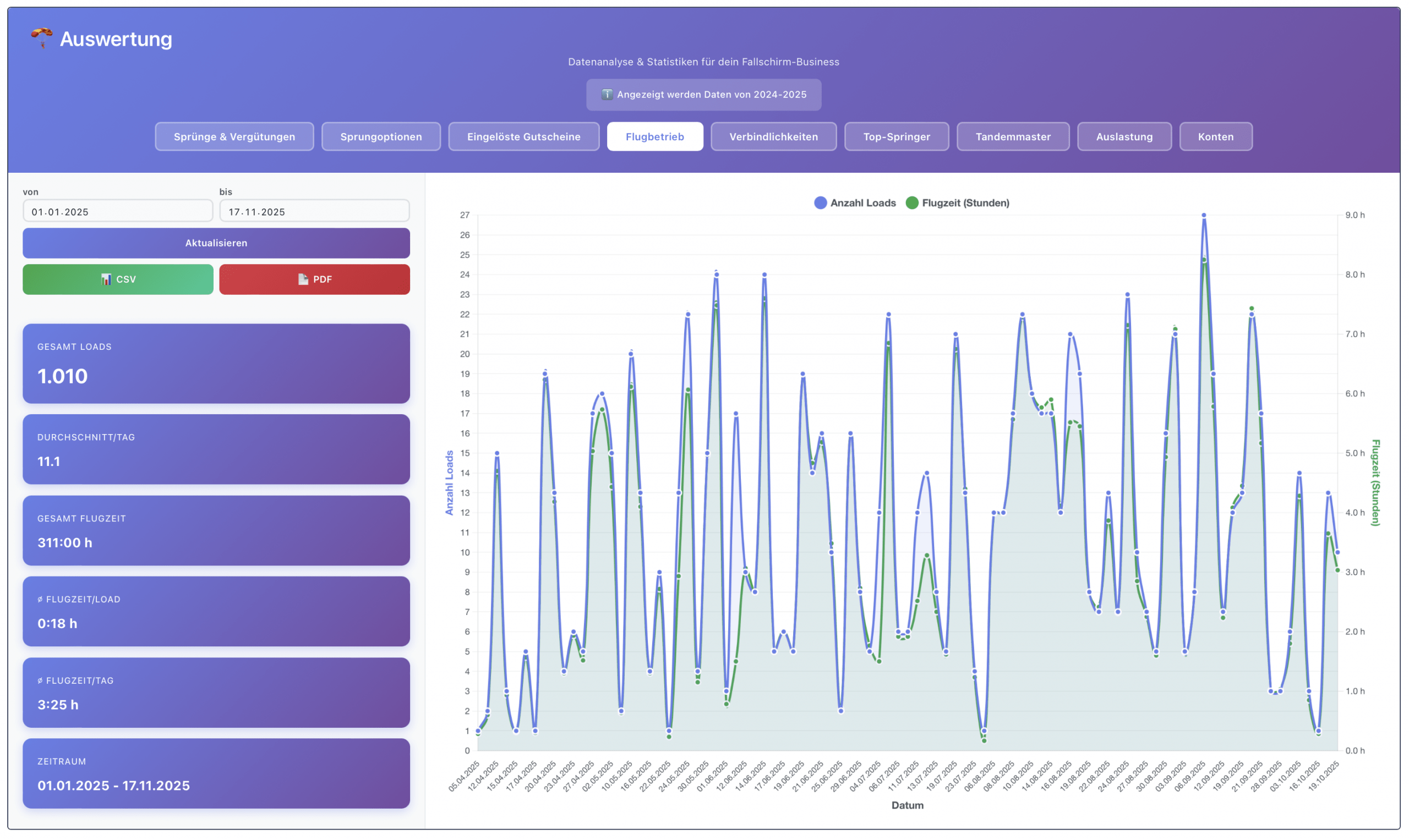 - Wirtschaftlichkeit der einzelnen Sprungtage,