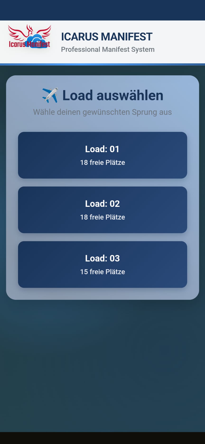 - Manifestieren mit auf DIY-Sitzplätzen: es werden im QR-Scanner nur Loads angeboten, die über freie DIY-Sitzplätze verfügen. Diese müssen vorab durch das Manifest-Personal über den Platzhalter „DIY“ für jeden Load angelegt werden.